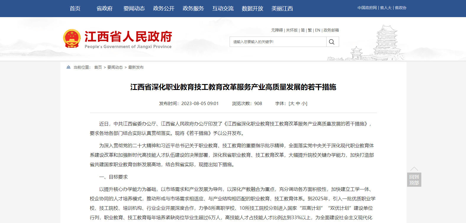 近日,中共江西省委辦公廳、江西省人民政府辦公廳印發(fā)了《江西省深化職業(yè)教育技工教育改革服務(wù)產(chǎn)業(yè)高質(zhì)量發(fā)展的若干措施》,要求各地各部門結(jié)合實(shí)際認(rèn)真貫徹落實(shí)?,F(xiàn)將《若干措施》予以公開(kāi)發(fā)布。