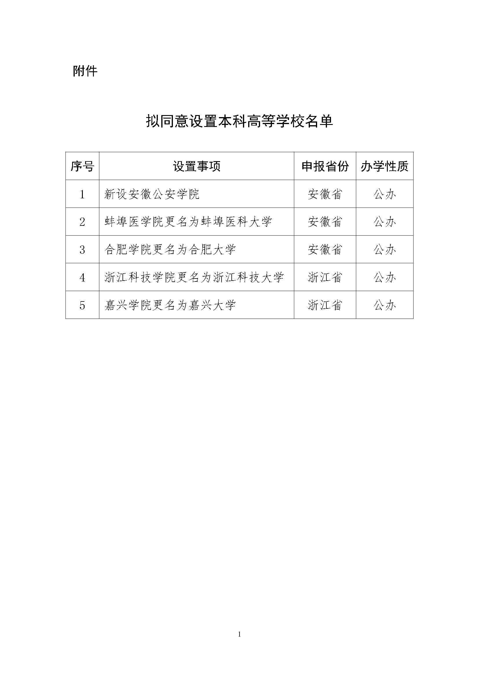 教育部發(fā)布《關(guān)于擬同意設(shè)置本科高等學(xué)校的公示》。公示指出,根據(jù)《中華人民共和國高等教育法》《普通高等學(xué)校設(shè)置暫行條例》《普通本科學(xué)校設(shè)置暫行規(guī)定》有關(guān)規(guī)定以及第八屆全國高等學(xué)校設(shè)置評(píng)議委員會(huì)考察評(píng)議結(jié)果,經(jīng)教育部黨組會(huì)議審議,擬同意設(shè)置安徽公安學(xué)院等5所學(xué)校,現(xiàn)予公示。公示時(shí)間為2023年11月20日至11月24日。