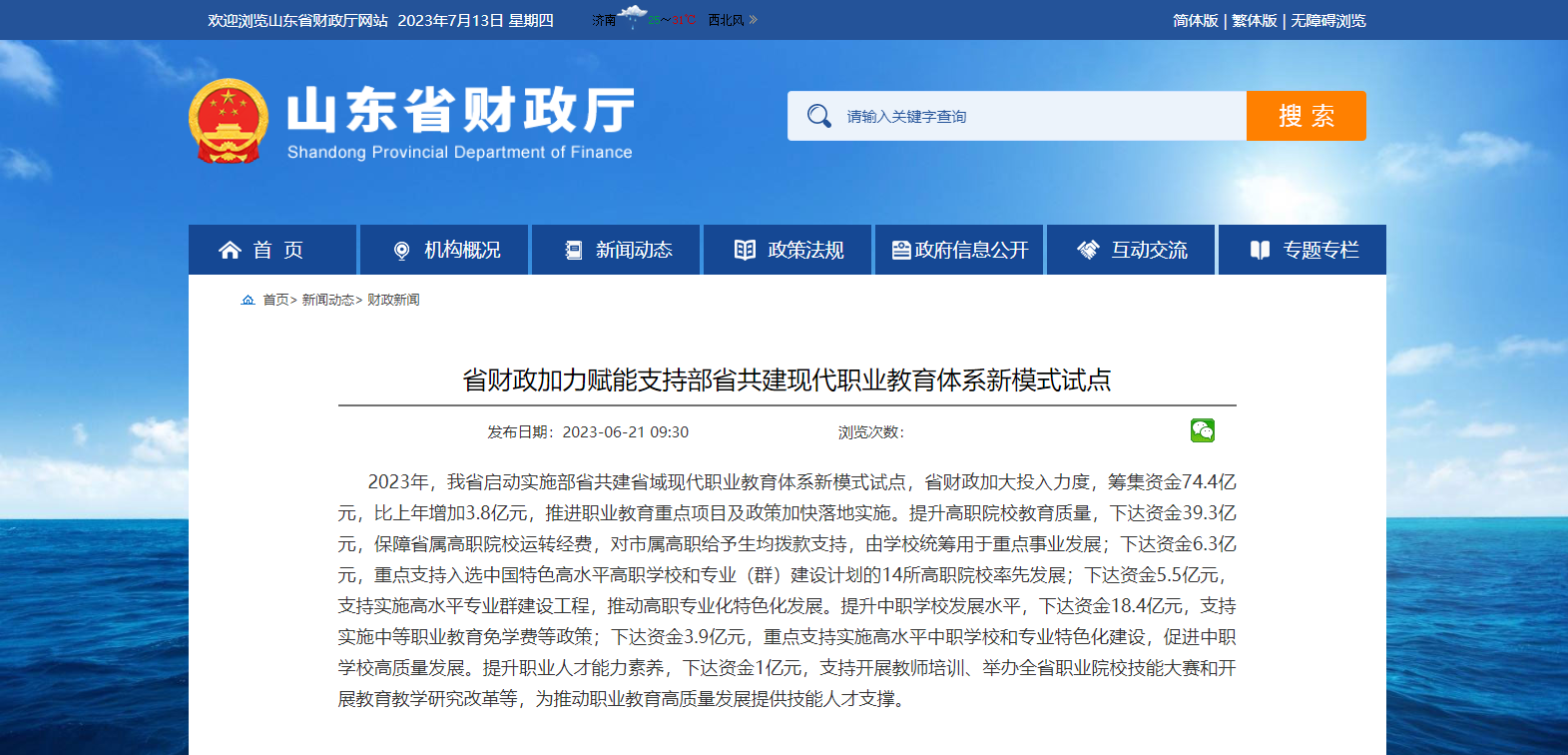 山東省財(cái)政廳官網(wǎng)發(fā)布,2023年,山東省啟動(dòng)實(shí)施部省共建省域現(xiàn)代職業(yè)教育體系新模式試點(diǎn),省財(cái)政加大投入力度,籌集資金74.4億元,比上年增加3.8億元,推進(jìn)職業(yè)教育重點(diǎn)項(xiàng)目及政策加快落地實(shí)施。提升高職......