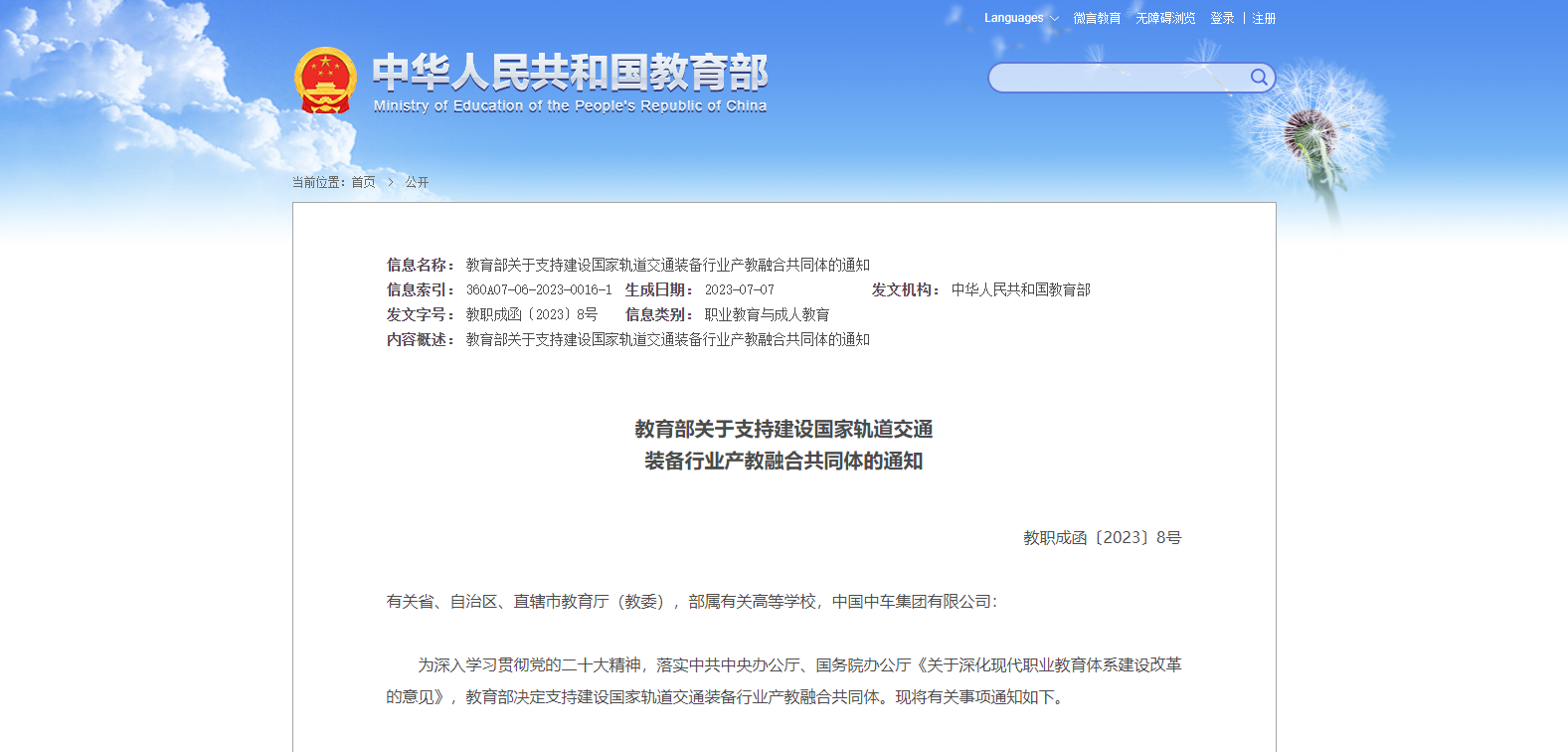 教育部關(guān)于支持建設(shè)國家軌道交通 裝備行業(yè)產(chǎn)教融合共同體的通知