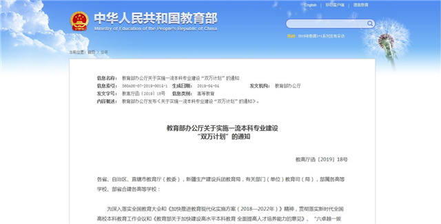 教育部:啟動一流本科專業(yè)建設“雙萬計劃”