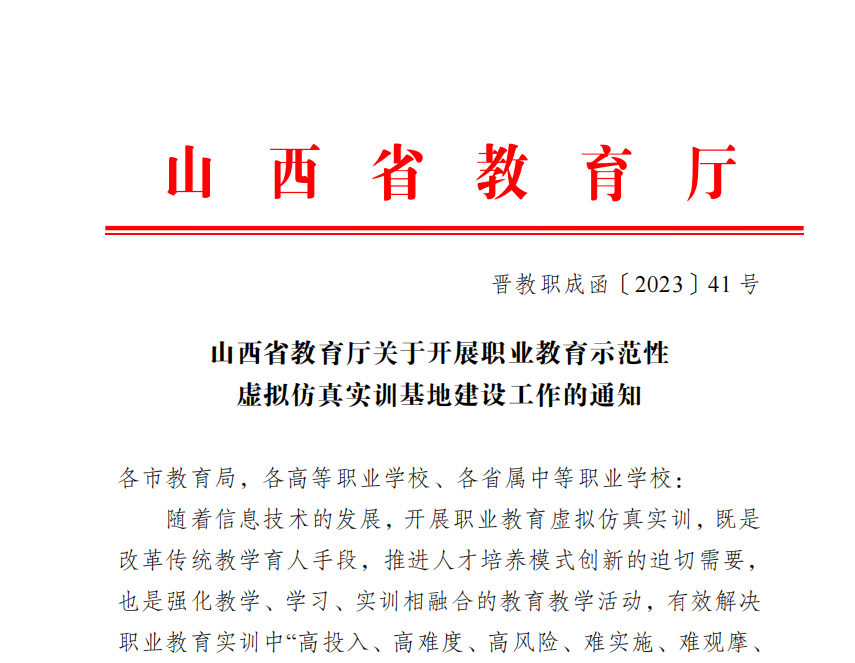 山西省教育廳發(fā)布關(guān)于開(kāi)展職業(yè)教育示范性虛擬仿真實(shí)訓(xùn)基地建設(shè)工作的通知