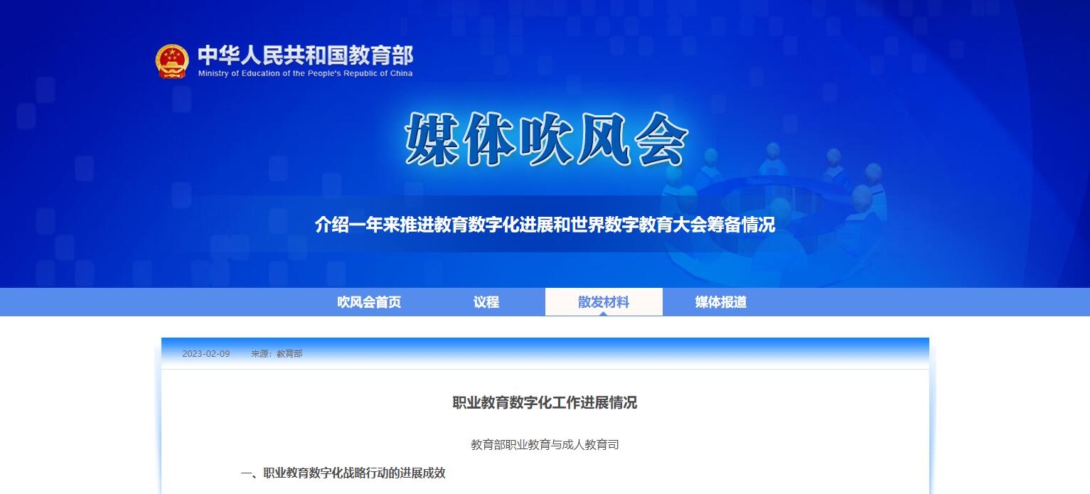 教育部職業(yè)教育與成人教育司:職業(yè)教育數(shù)字化工作進展情況