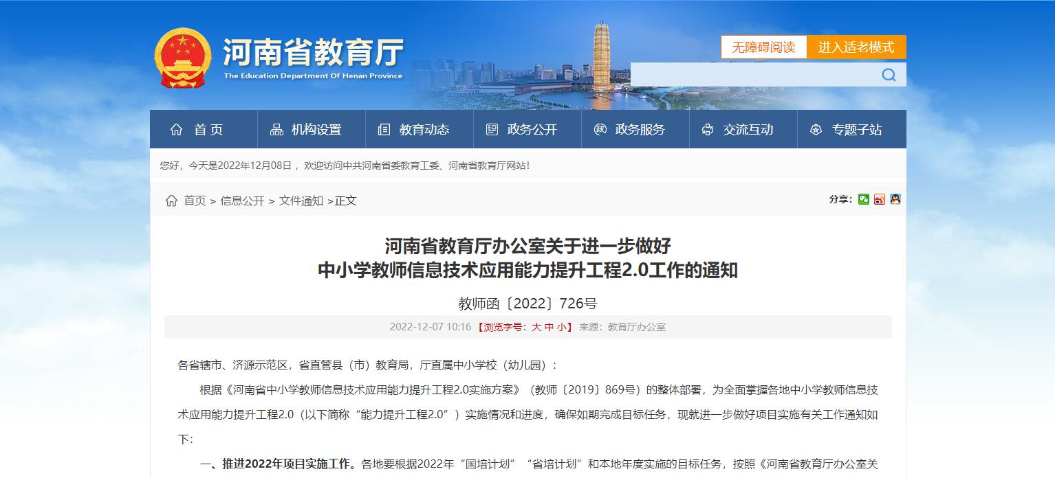 河南省教育廳辦公室關(guān)于進一步做好 中小學教師信息技術(shù)應(yīng)用能力提升工程2.0工作的通知