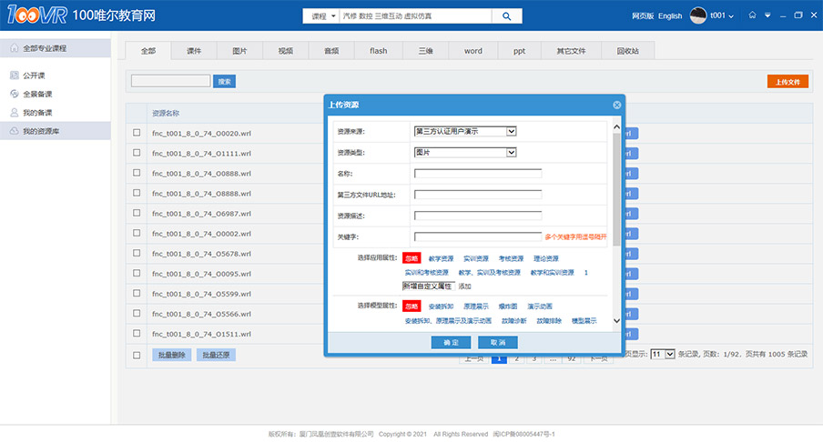 支持第三方教材導入,課題組備課資源共享,三維仿真資源編輯/修改,上傳/下載。
